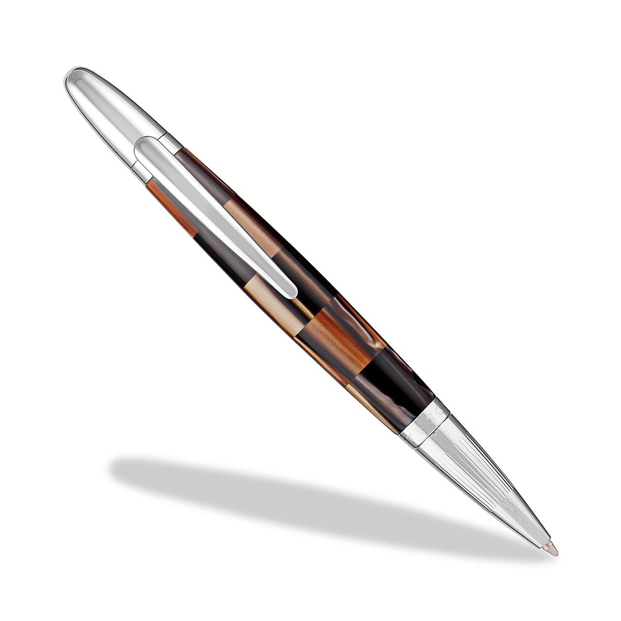 Here’s a bold and distinctive ballpoint pen that promises a winning writing experience. Crafted in gleaming iridescent resins in a classic checkerboard pattern framed by shining chrome appointments, the Checkmate Ballpoint features a dirigible-shaped spheroid barrel that is comfortable in the hand, allowing for hours and hours of copious writing. May your next writing game reward you with an irrefutable and strategic victory. Words will never escape you.