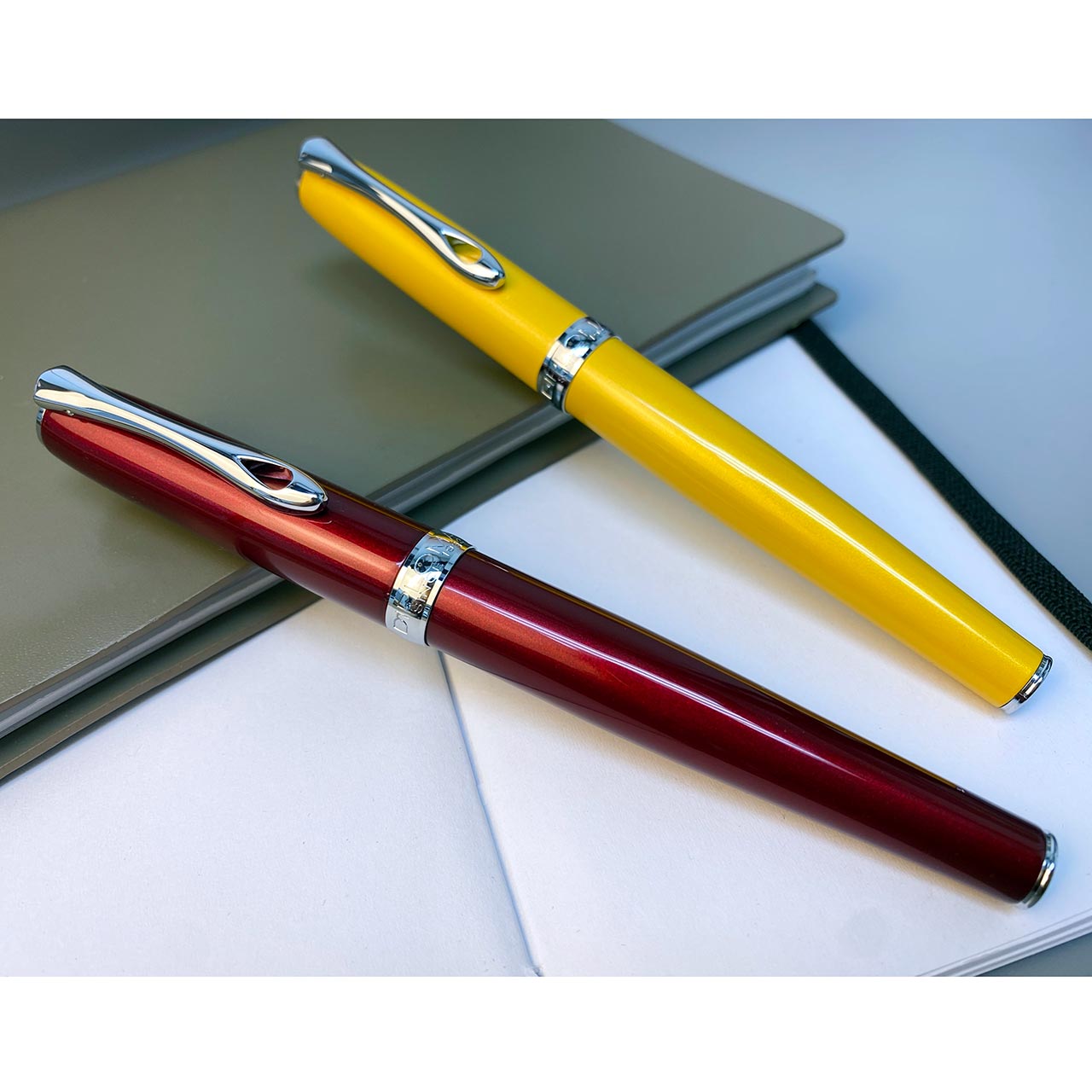 Diplomat presents a new generation of Excellence in this timeless pen design, the culmination of decades of experience in the fine writing field. Featuring a new snap-on cap system that closes with a soft sliding click, the Excellence A2 is also equipped with a full metal spring-loaded clip to allow you to attach it easily to a pocket or portfolio. Crafted in richly lacquered brass with polished chrome appointments. Rollerball or Ballpoint.