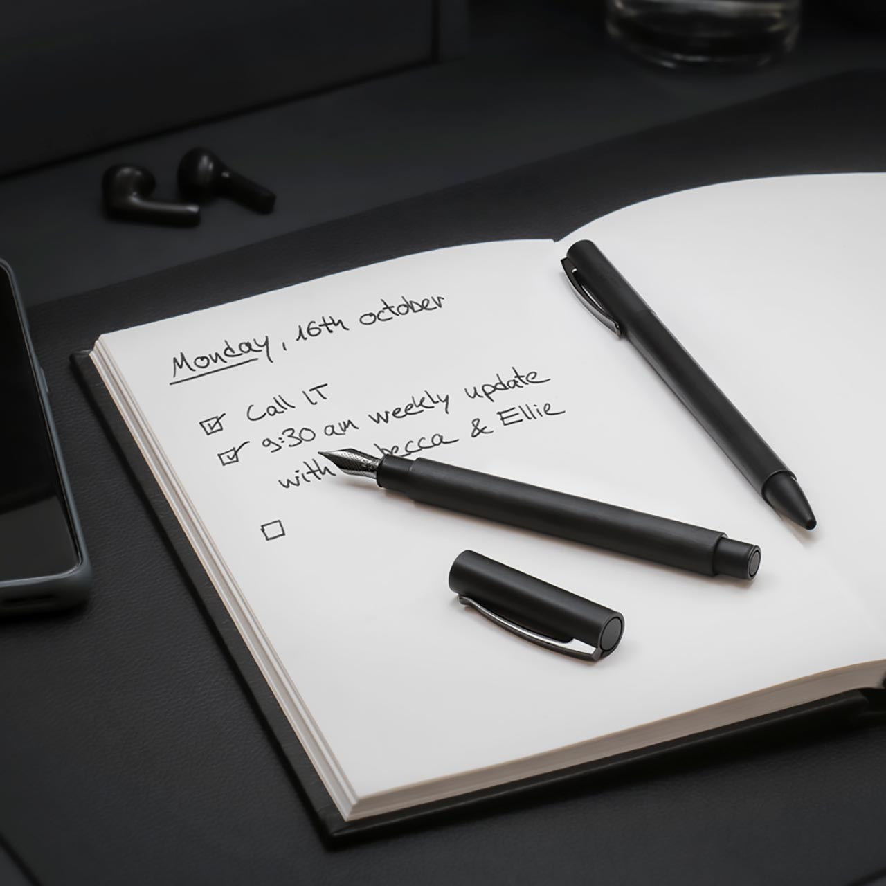 Make a statement with this luxuriously sleek yet unobtrusive Faber-Castell ballpoint pen designed to inspire the mind and please the hand. The All-Black Ballpoint is a study in black-on-black elegance, sporting a brushed black resin barrel and a cap and grip that are PVD-coated in black stainless steel. Made in Germany.