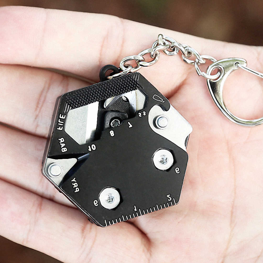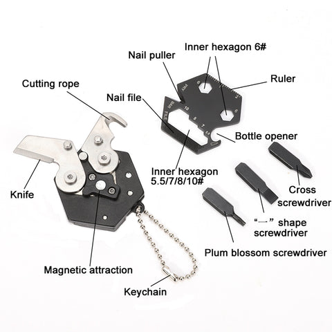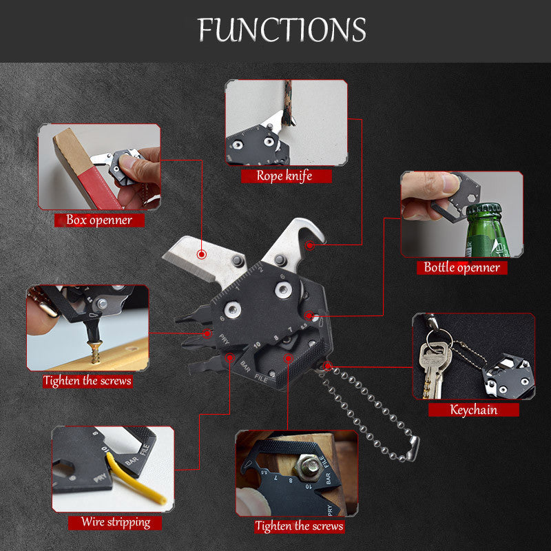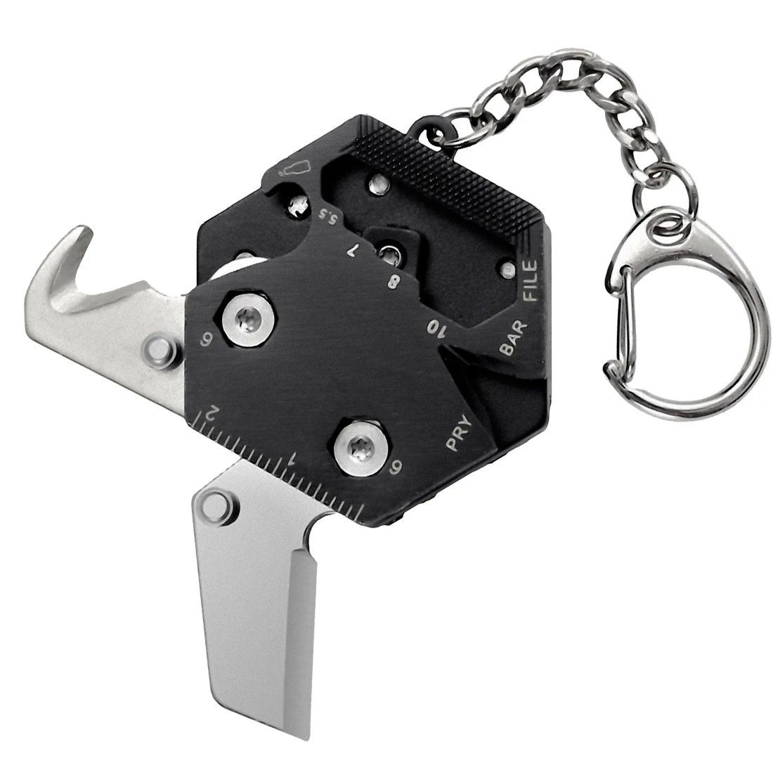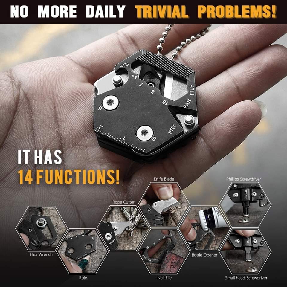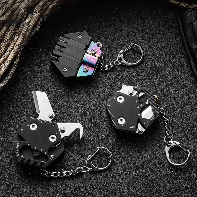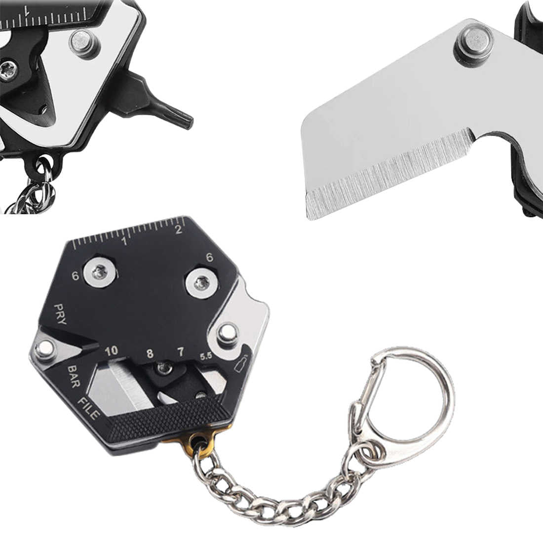 • The multitool keychain has a unique hexagon shape in a modern fashion.