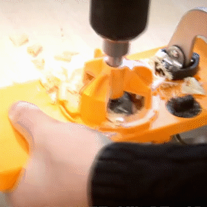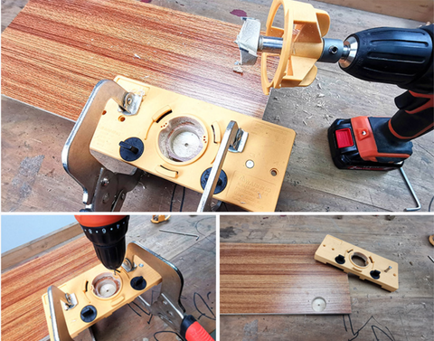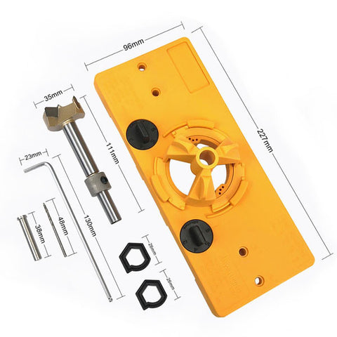 The Concealed Hinge Jig allows you to drill cup holes for concealed cabinet door hinges, and it is durable in use, includes fastener drills in different sizes for hinges hole.