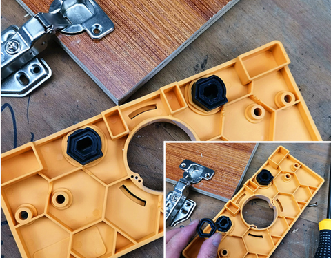 35mm Hinge Drilling Jig is made of high-quality engineering plastic, durable to use. This is a set of drill guide tool used for convenient hinge hole drilling.